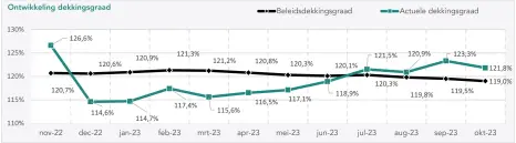 De geschatte actuele dekkingsgraad eind oktober 2023 bedraagt 121,8% (was eind september 2023 123,3%). De geschatte beleidsdekkingsgraad eind oktober...