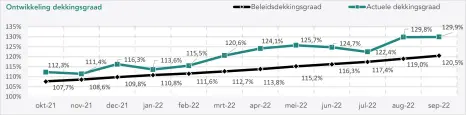 De geschatte actuele dekkingsgraad eind september 2022 bedraagt 129,9% (was eind augustus 2022 129,8%). De geschatte beleidsdekkingsgraad eind...