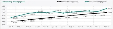 De geschatte actuele dekkingsgraad eind december 2021 bedraagt 116,3% (was eind november 2021 111,4%). De geschatte beleidsdekkingsgraad eind...