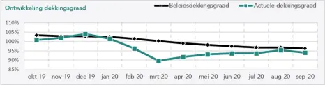 De geschatte actuele dekkingsgraad eind september 2020 bedraagt 94,0% (was eind augustus 2020 95,4%). De geschatte beleidsdekkingsgraad eind...