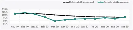 De geschatte actuele dekkingsgraad eind oktober 2020 bedraagt 96,6% (was eind september 2020 94,0%). De geschatte beleidsdekkingsgraad eind oktober...