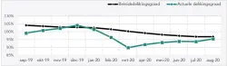 De geschatte actuele dekkingsgraad eind augustus 2020 bedraagt 95,4% (was eind juli 2020 93,6%). De geschatte beleidsdekkingsgraad eind augustus 2020...