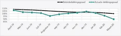 De geschatte actuele dekkingsgraad eind maart 2020 bedraagt 89,7% (was eind februari 2020 96,3%). De geschatte beleidsdekkingsgraad eind maart 2020...