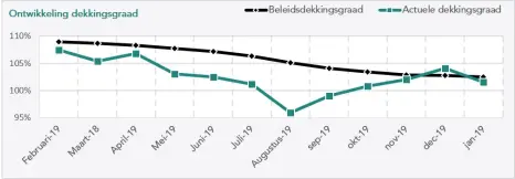 De geschatte actuele dekkingsgraad eind januari 2020 bedraagt 101,5% (was eind december 2019 104,1%). De geschatte beleidsdekkingsgraad eind...