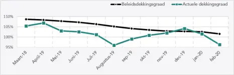 De geschatte actuele dekkingsgraad eind februari 2020 bedraagt 96,3% (was eind januari 2020 101,5%). De geschatte beleidsdekkingsgraad eind...