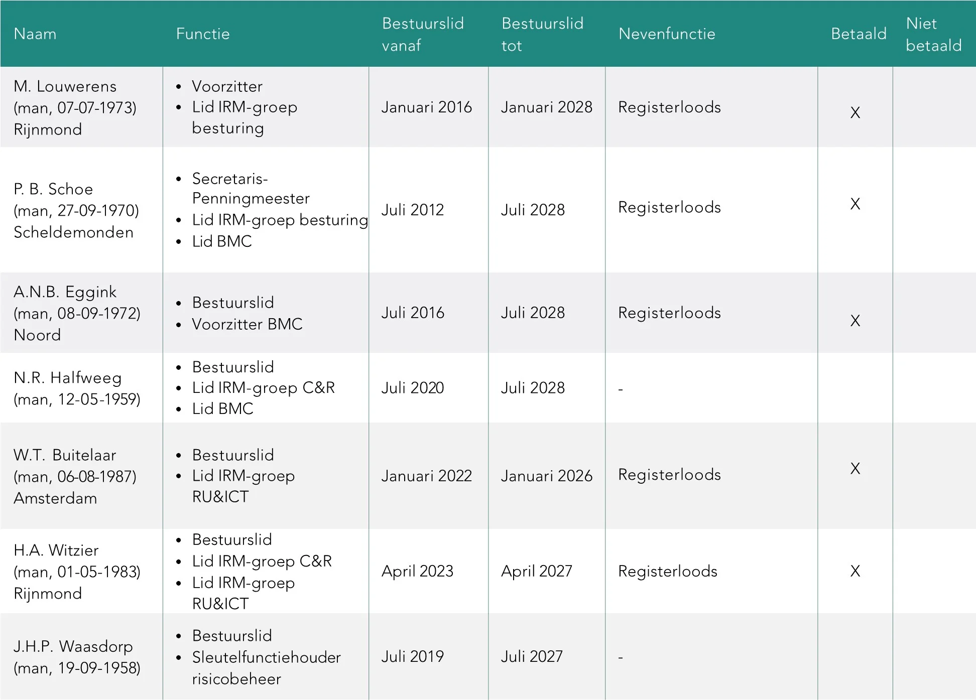 | W.T. Buitelaar | Bestuurslid | Januari 2022 | Januari 2026 |